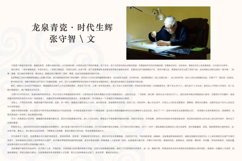 龙泉半闲堂是龙泉唯一的中国国家用瓷生产基地。由当代中国陶瓷泰斗张守智教授领衔,先后为2014年北京APEC峰会、2015